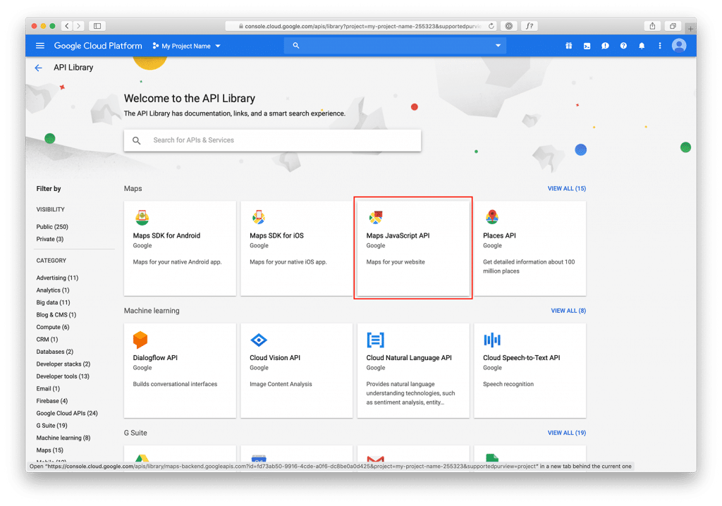 - 3. Enable the Maps JavaScript API: Navigate to “APIs & Services” > “Library”. Search for “Maps JavaScript API” and click **Enable**.
