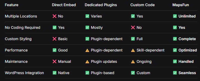 Comparative Analysis: WordPress Methods vs. mapsfun.com