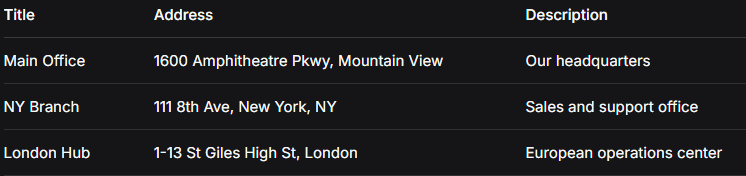 - – Code Maintenance: Any error in the script breaks the map. Adding custom icons or popups requires more advanced coding.