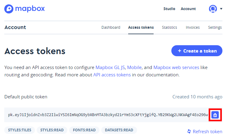 Where to find your Mapbox access token.