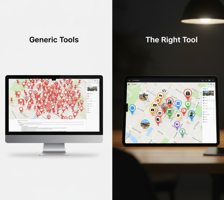 The Pin Limit Frustration: Manually adding more than 10-20 locations in a tool like Google My Maps becomes a tedious chore, sucking the joy out of your passion project.